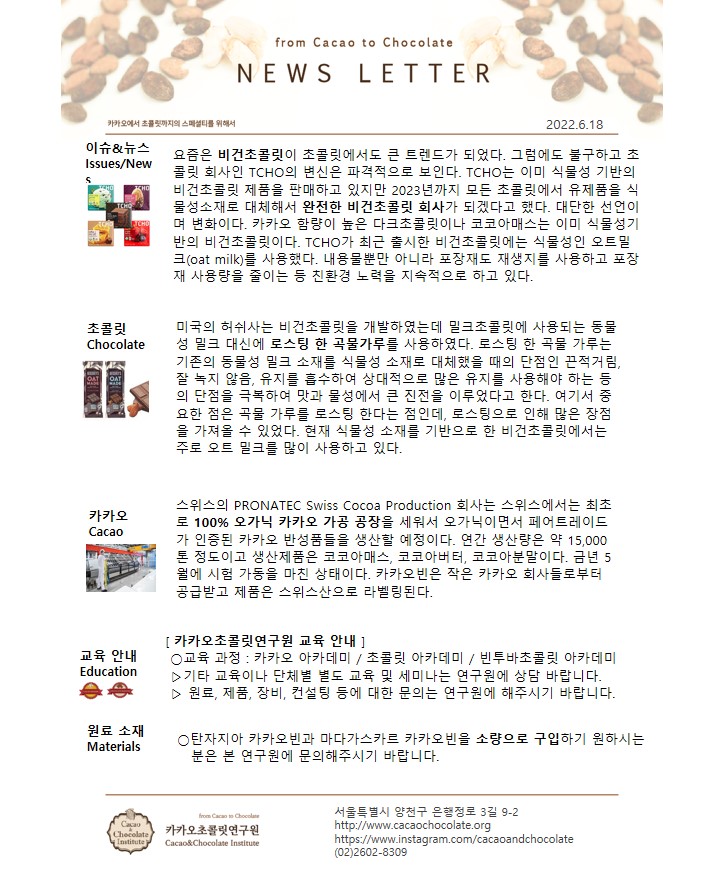 뉴스레터-비건초콜릿, 오가닉 카카오 전문 가공 공장